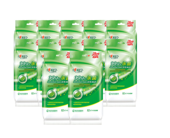 心相印濕巾 衛(wèi)生99.9%殺菌濕巾 10片獨(dú)立裝*12包 (量販裝)120片便攜濕巾